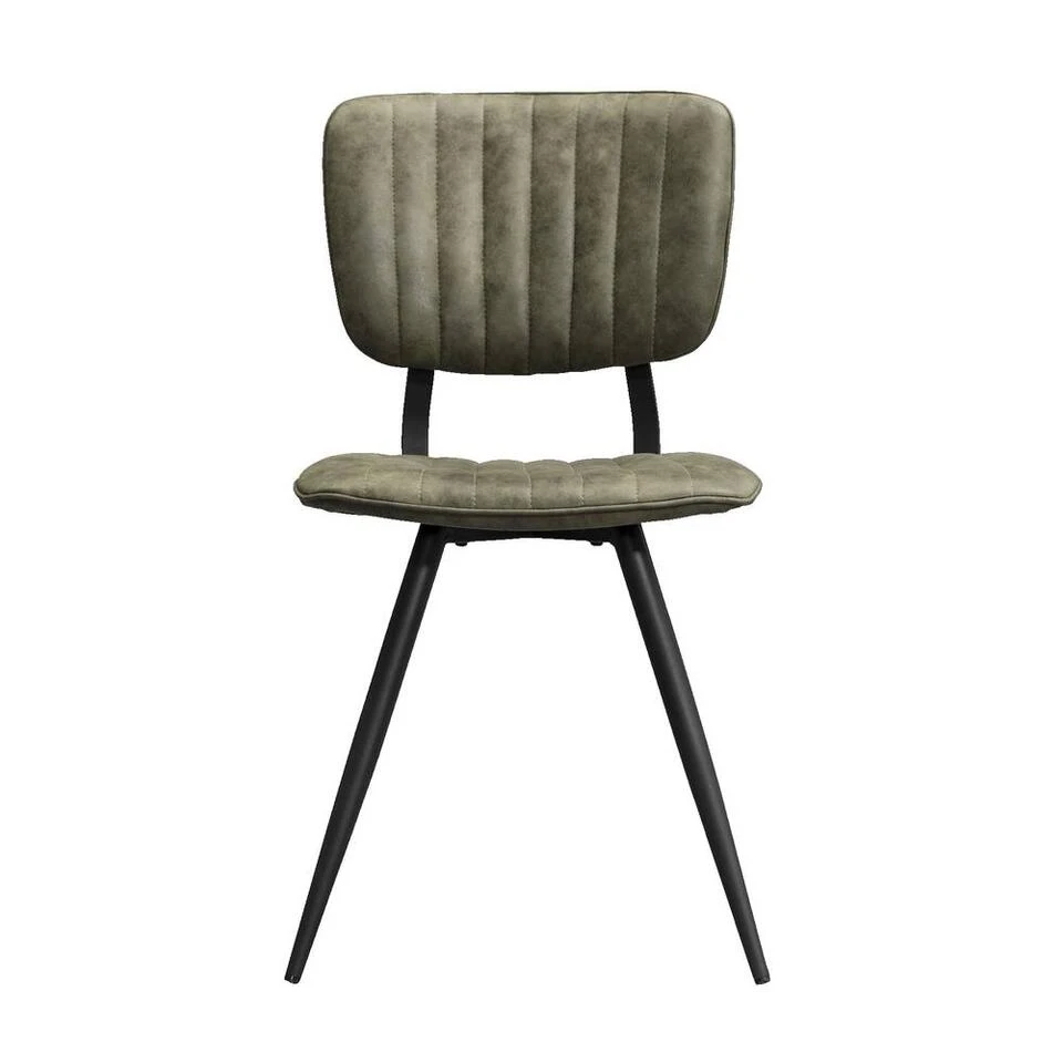 Eetkamerstoel Brim is een eenvoudige, maar opvallende stoel in je interieur. Deze stoel wordt gekenmerkt door een landelijk stoere look. Deze stijlvolle stoel heeft een rugleuning en zitting bekleed met stoffen bekleding in de kleur olijfgroen. Dit stoeltje staat op vier slanke pootjes van zwart metaal. De stoel zit comfortabel en heeft een trendy look. Zet deze stoelen aan een eetkamertafel van jouw keuze en stel zo je eigen eethoek samen.